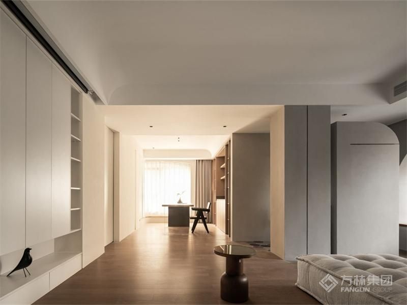 本案米棕、深灰等中性主调交织,利落线条勾勒空间轮廓。大理石的雅致、木质的温润与金属细节碰撞,在客厅社交休憩、餐厨家庭互动等场景中,功能与美学共生,以简约大气的布局、时尚细腻的材质,打造出契合意式精致生活方式的雅致居家空间。