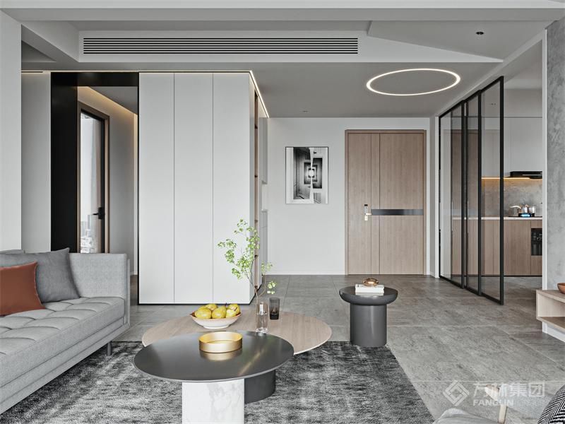 本案米棕、深灰等中性主调交织,利落线条勾勒空间轮廓。大理石的雅致、木质的温润与金属细节碰撞,在客厅社交休憩、餐厨家庭互动等场景中,功能与美学共生,以简约大气的布局、时尚细腻的材质,打造出契合意式精致生活方式的雅致居家空间。