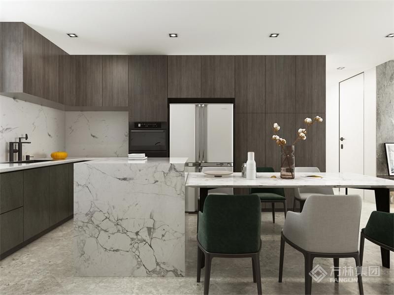 本案米棕、深灰等中性主调交织,利落线条勾勒空间轮廓。大理石的雅致、木质的温润与金属细节碰撞,在客厅社交休憩、餐厨家庭互动等场景中,功能与美学共生,以简约大气的布局、时尚细腻的材质,打造出契合意式精致生活方式的雅致居家空间。