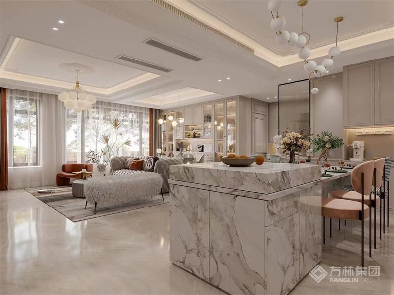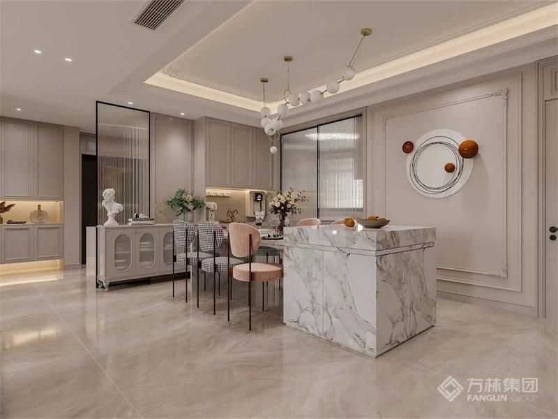 大面积浅灰色搭配精致的法式线条,结合石材、金属、丝绒等材质打造出高级感满满的新家