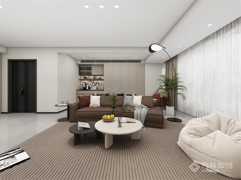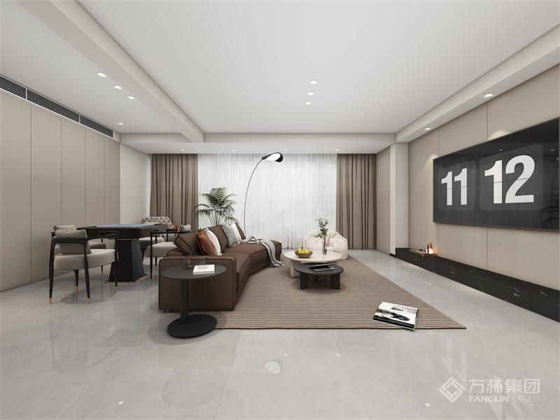本案米棕、深灰等中性主调交织,利落线条勾勒空间轮廓。大理石的雅致、木质的温润与金属细节碰撞,在客厅社交休憩、餐厨家庭互动等场景中,功能与美学共生,以简约大气的布局、时尚细腻的材质,打造出契合意式精致生活方式的雅致居家空间。
